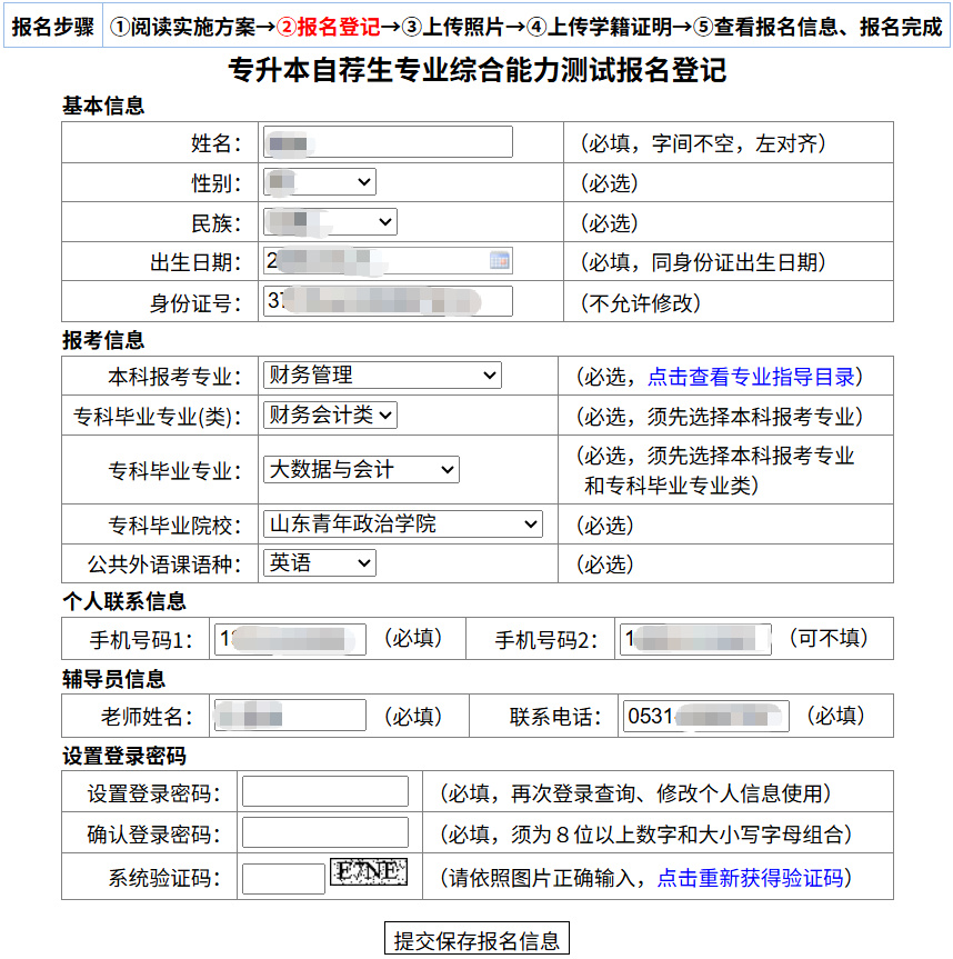 修改信息后,点击“提交保存报名信息”保存修改后的信息。