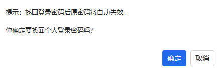 正确输入报名身份证号、报名姓名、依照图片输入验证码,点击“找回登录密码”,系统提示:找回登录密码后原密码将自动失效。你确定要找回个人登录密码吗?如下图: