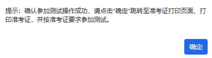 点击“确定”自动跳转至确认参加测试页面。