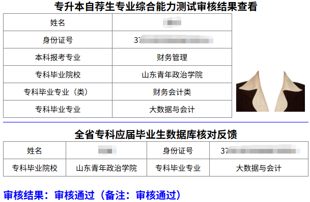 网上报名结束,经与全省专科应届毕业生数据库进行核对,按要求填报信息、上传报考资料且符合专业报考条件考生将标记为“审核通过”,不符合报考条件的考生标记为“审核不通过”。系统开放审核结果查询后,考生可自行登录系统查询个人审核结果。