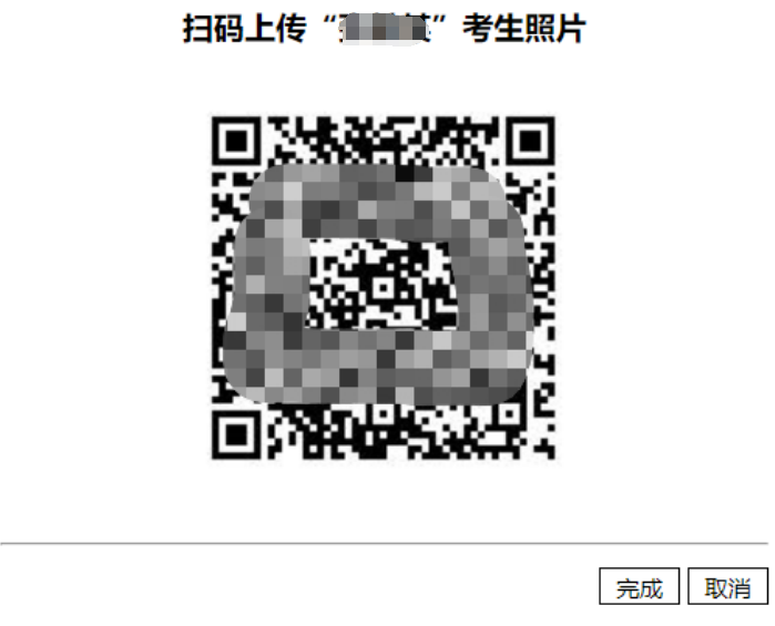 依照提示,在电脑点击“完成”按钮,系统显示扫码上传照片,如下图: