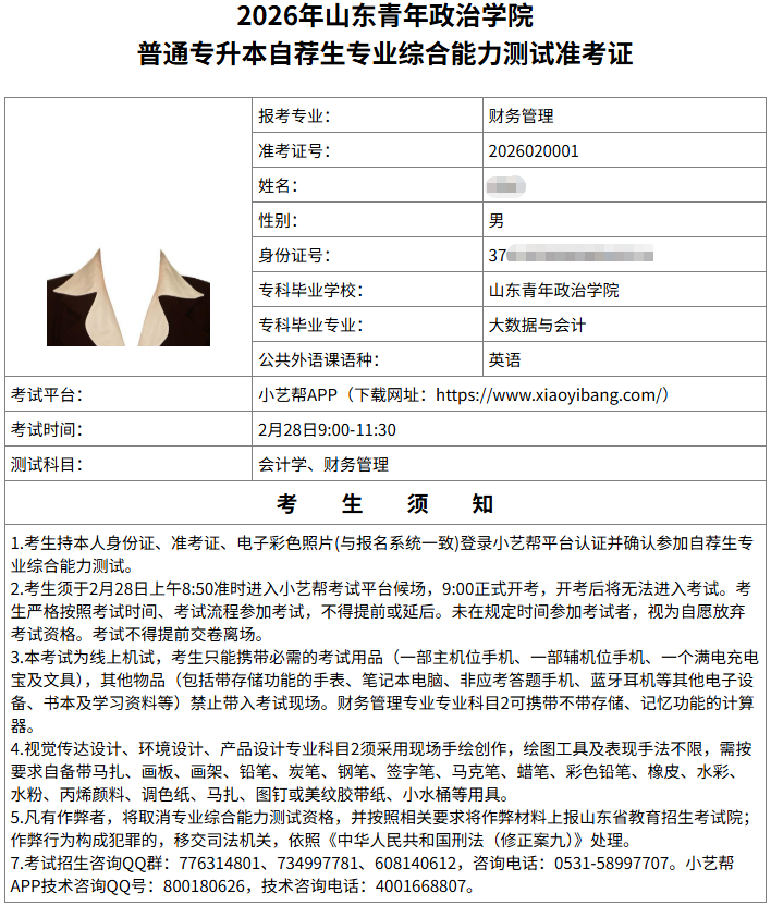 说明:本准考证为样张,正式准考证以系统打印为准。