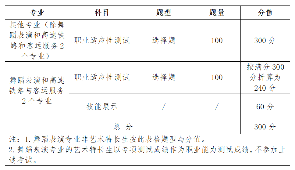 1.考试对象:报考舞蹈表演(非艺术特长生)和高速铁路与客运服务2个专业的考生。