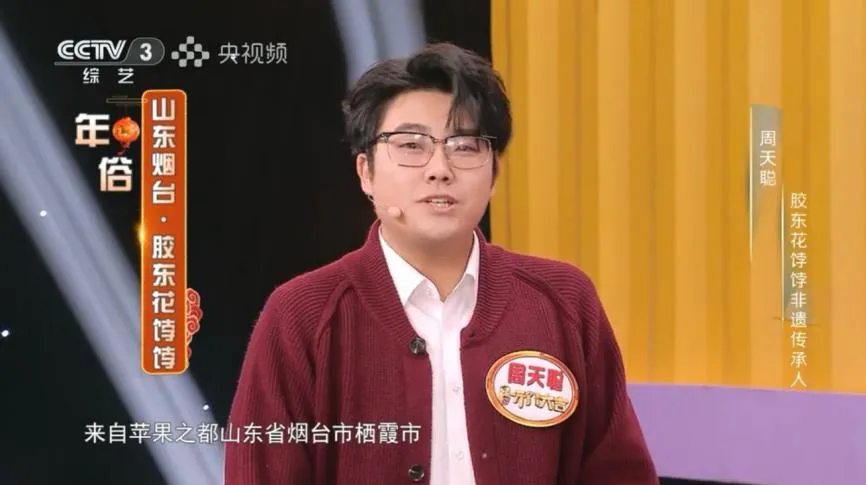 春和景明,非遗传韵。2月18日晚,泰山科技学院学子周天聪同学,以非遗传承人的身份亮相央视综艺频道《开门大吉》新春特别节目,让胶东花饽饽这一山东省省级非物质文化遗产项目在国家级舞台上精彩绽放。