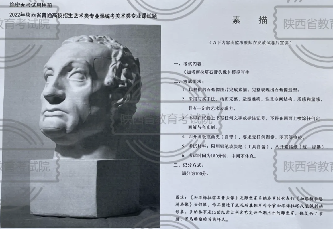 素描试题难易程度适中。石膏像素描是学习
