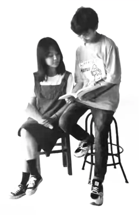 考试题目:双人动态速写,两个坐姿的青年,一男一女,男人捧着书,两个人在看书。