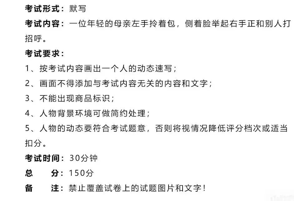 试题形式为写生、默写或按照提供的图片进行描绘