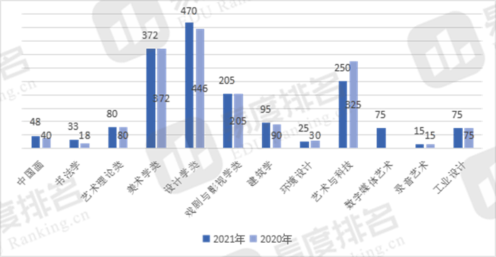 图2.中国美术学院2020-2021年各专业(类)招生情况