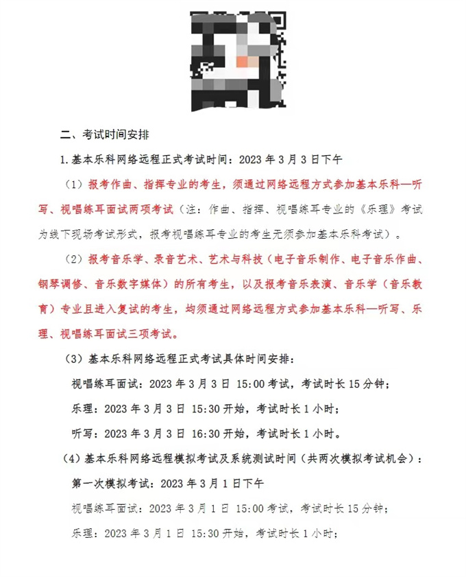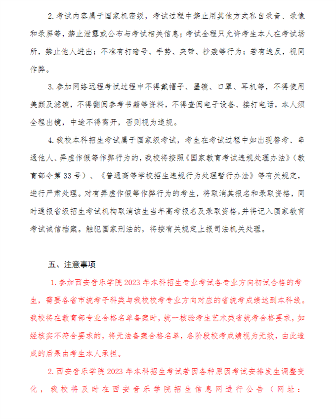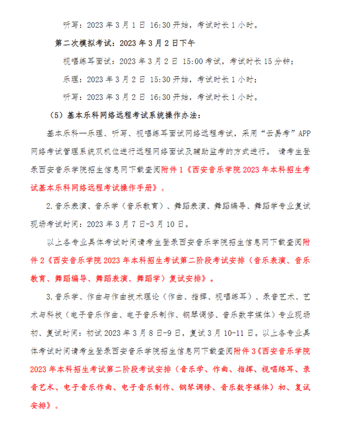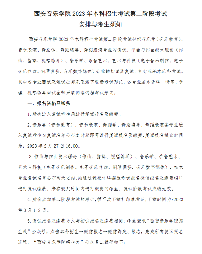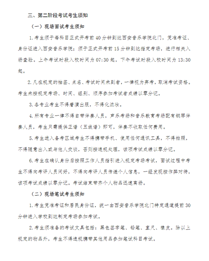 西安音乐学院2023年第二阶段考试安排与考生须知