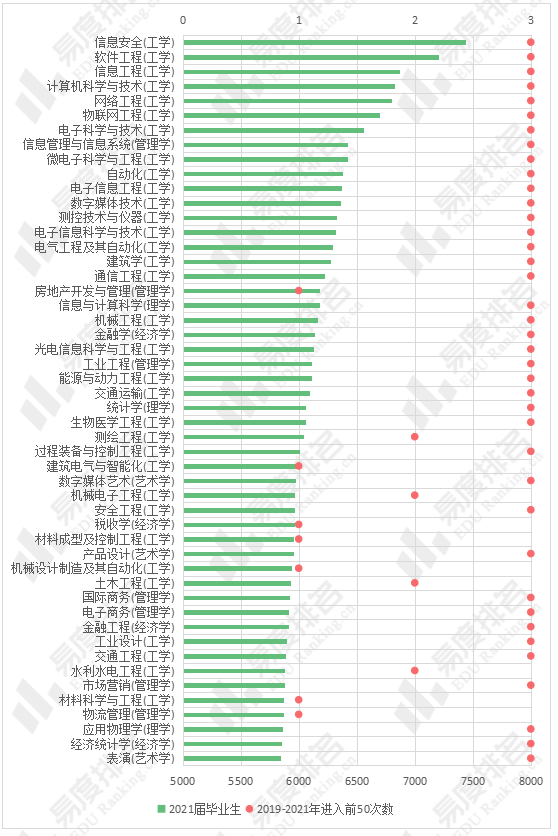 图1.2021届本科生毕业半年薪资TOP50专业