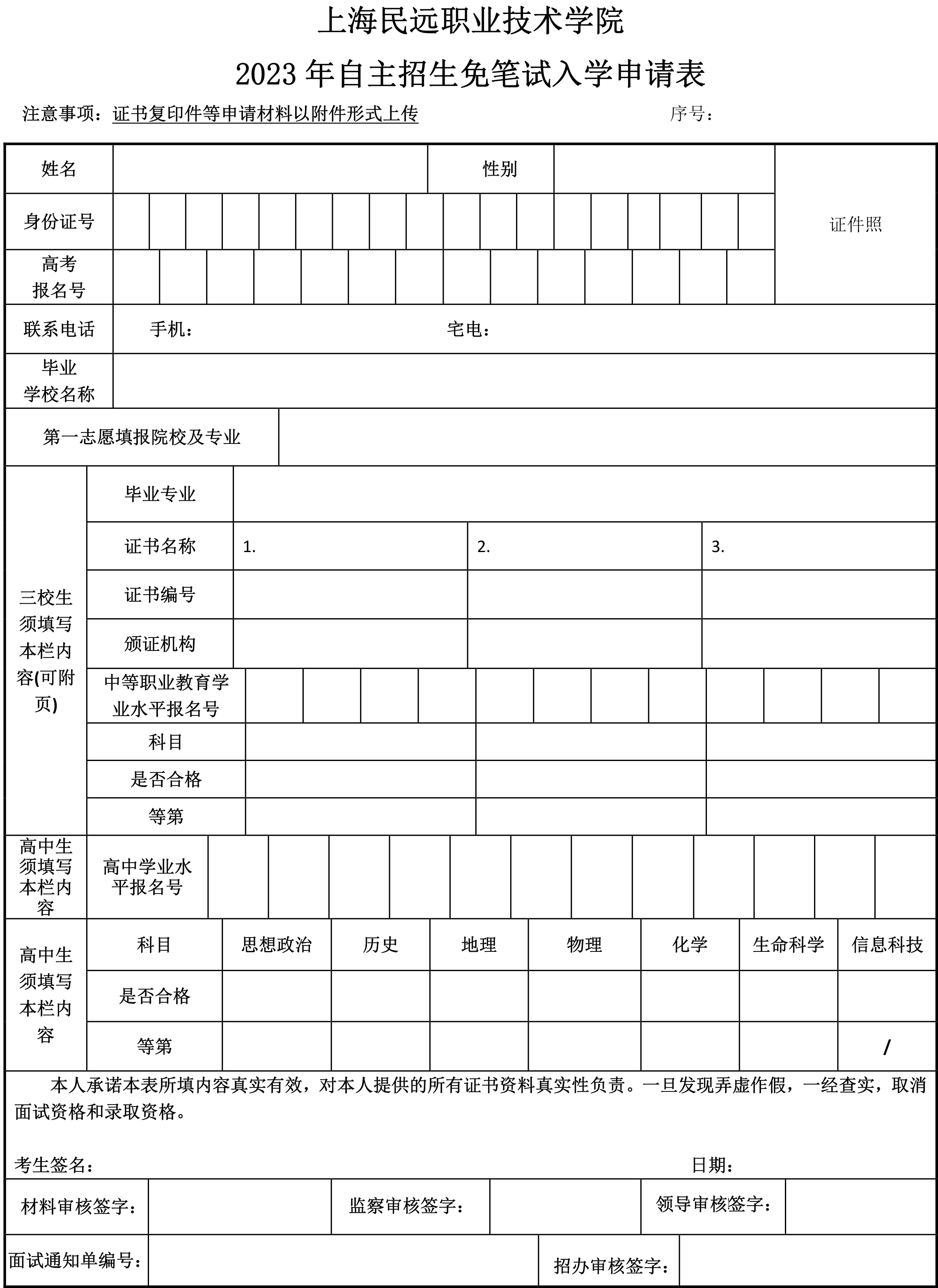 2023自主招生 免笔试面试申请表0306.docx