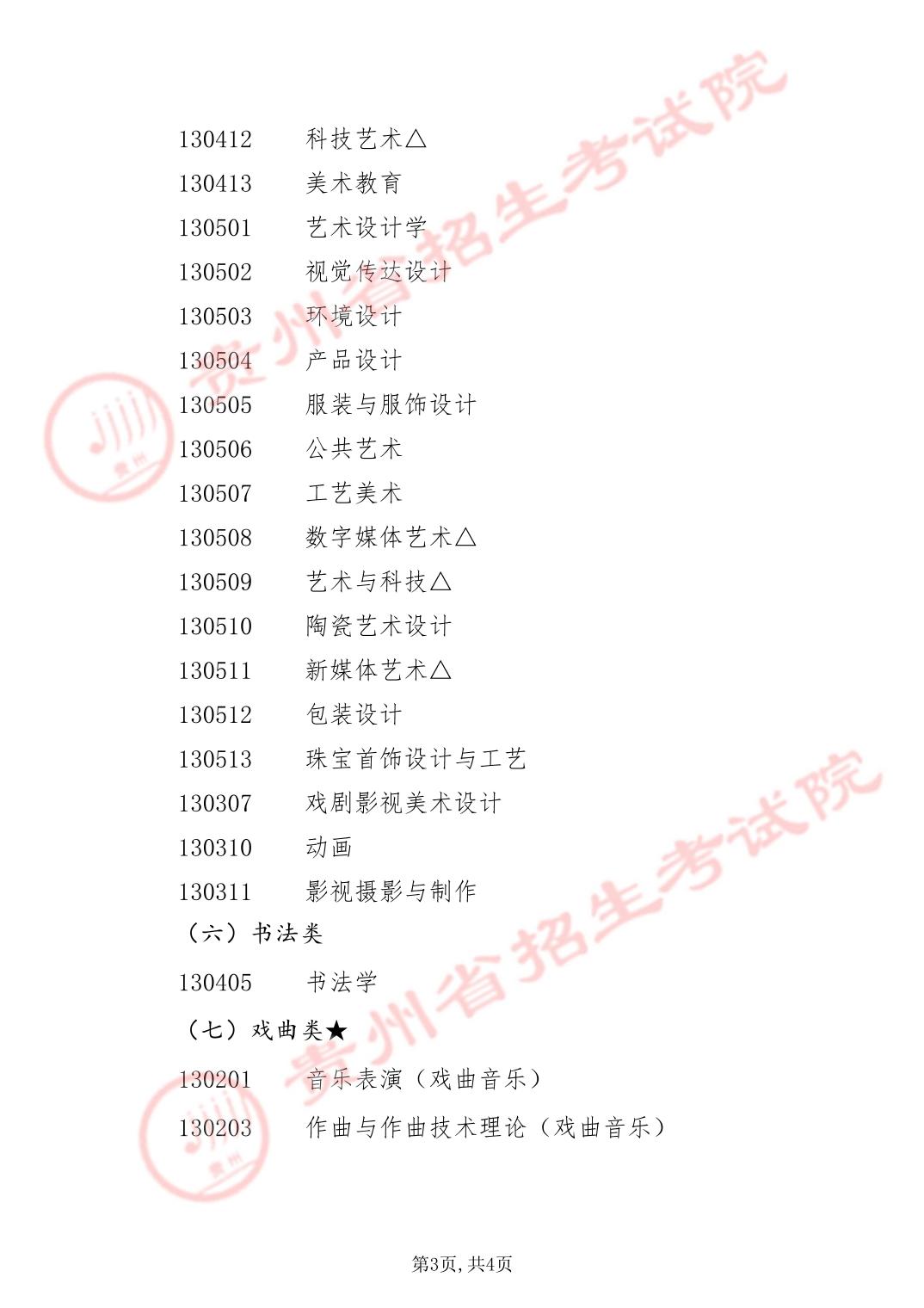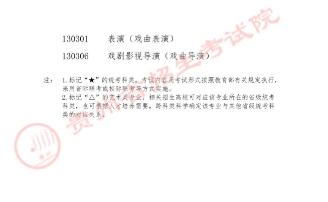 贵州省普通高等学校艺术类本科考试招生专业目录(试行)