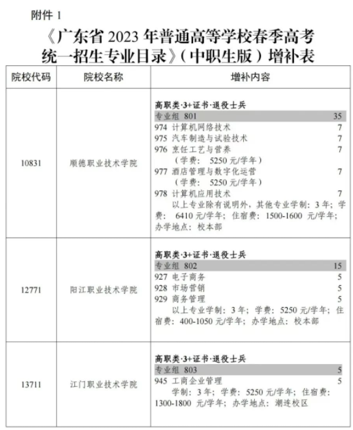 1.《广东省2023年普通高等学校春季高考统一招生专业目录》(中职生版)增补表