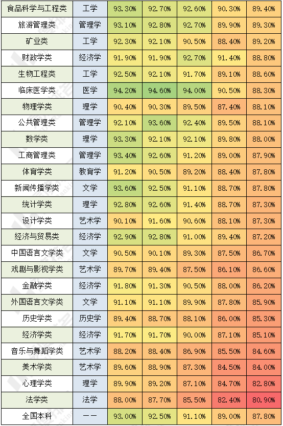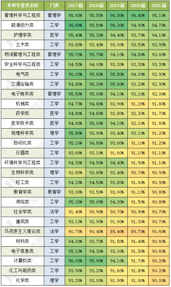 理科性质的学科就业率普遍高于文科,就业依然是理科的“天下”。护理学、土木虽然工作强度大,工作时间长,不过社会对于这两个学科毕业生的需求量同样很大,相比文科生属于是:虽然碗里的饭来之不易,但好过根本没有碗。