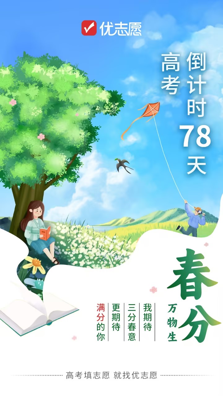 春分撒下汗水,用一片碧绿来换取金秋的满地黄金,收获的是成功的喜悦,迈入另一阶段,你的生命会更加精彩,优志愿预祝考生金榜题名!