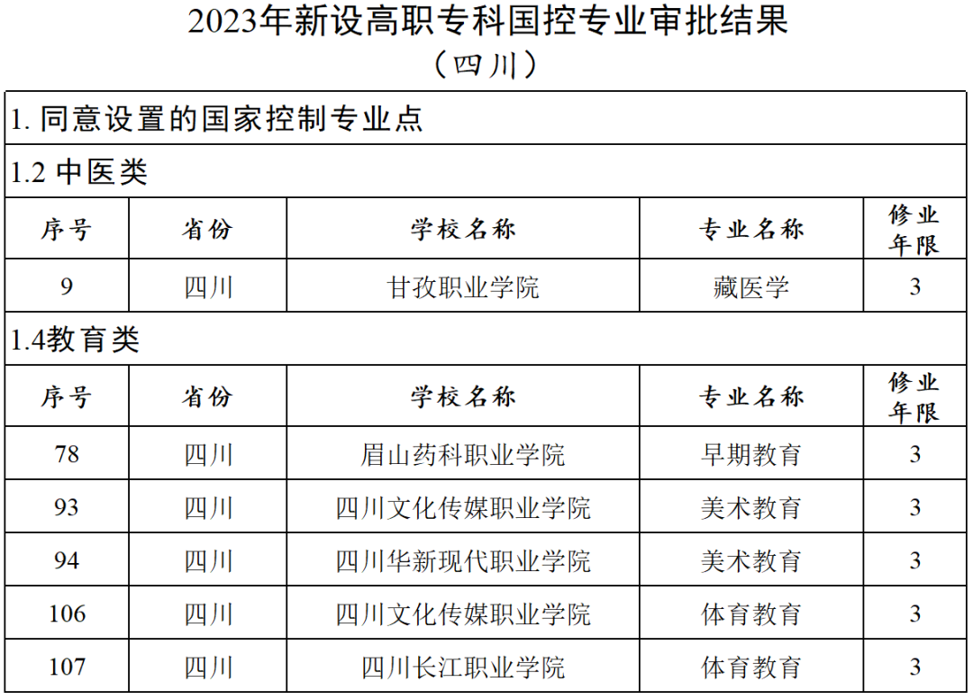审批同意设置的国控专业将导入全国职业院校专业设置管理与公共信息服务平台,自2023年起可以招生。