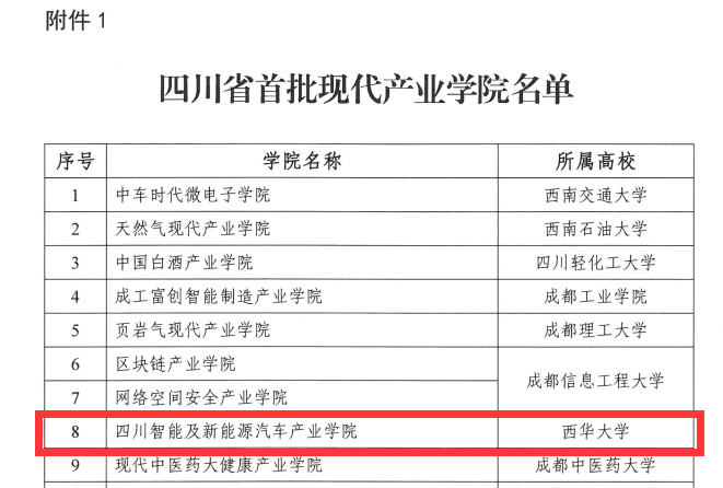 近日,四川省教育厅和四川省经济和信息化厅联合公布了首批省级现代产业学院名单。首批省级现代产业学院共计有25所高校的27个项目,西华大学四川智能及新能源汽车产业学院成功入选。