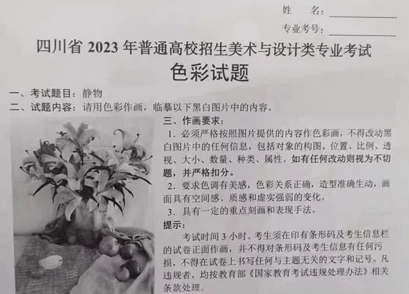色彩考题:静物,请用色彩作画,临摹以下黑白图片中的内容。