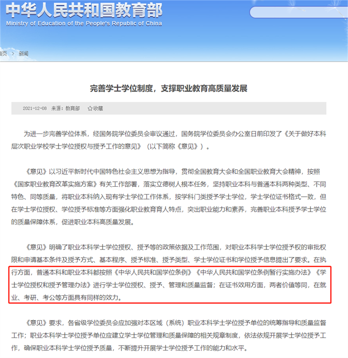 虽然名称中带有职业二字,却也是实打实的本科,在2021年12月8日,教育部印发的《完善学士学位制度,支撑职业教育高质量发展》中,明确在证书效用方面,普通本科和职业本科价值等同,在就业、考研、考公等方面具有同样的效力,所以如果你的成绩不是很突出,择校时注重就业,可以参考下今天介绍的这几所院校,除此之外还有29所职业本科院校,感兴趣的同学可自行搜索了解~