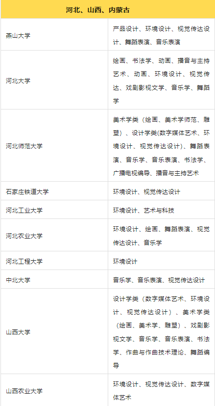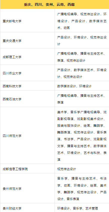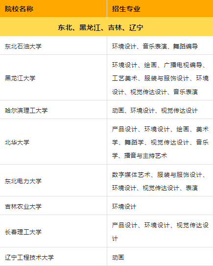 经过上述的解释,你应该对”小211"有了一定的了解,下面优艺考汇总了“小211”中招收艺术的院校和专业,别人都在关注的好学校,你也一定不要错过!