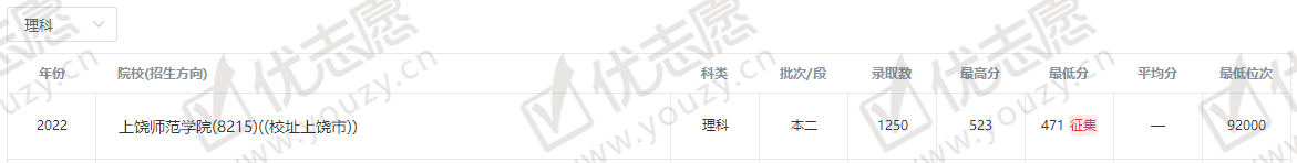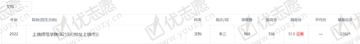 2022年在本省市的招生录取分数线
