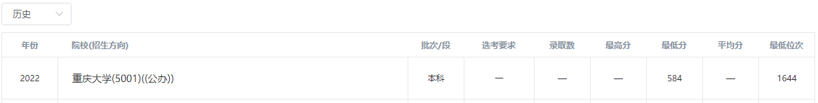 2022年重庆大学在本市录取分数线: