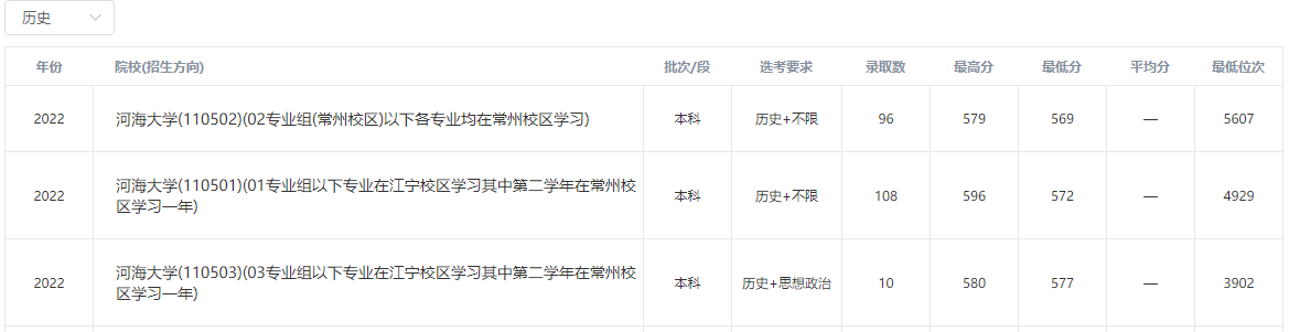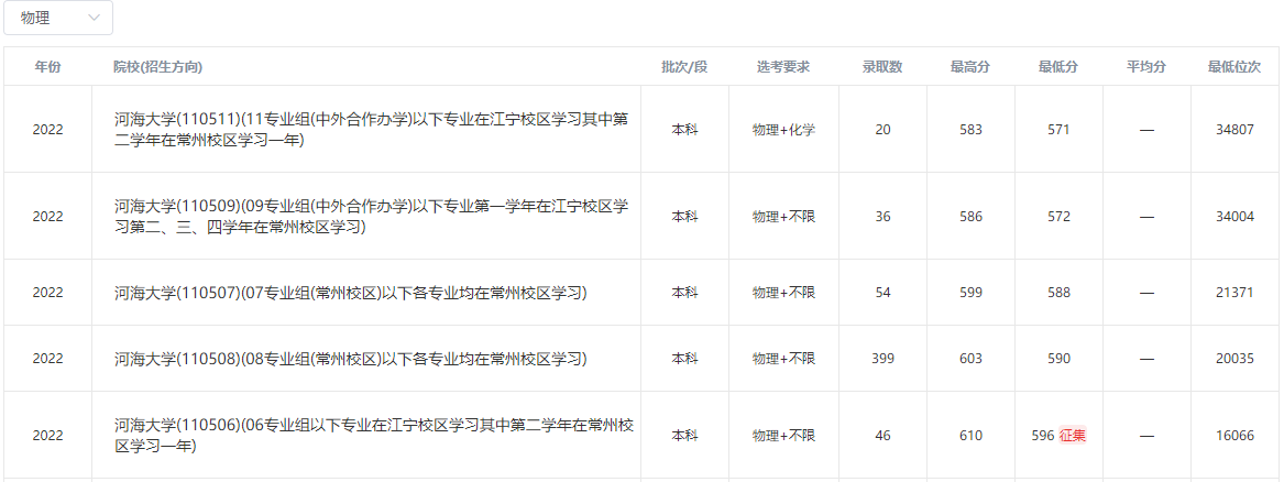 2022年河海大学在本省部分录取分数线: