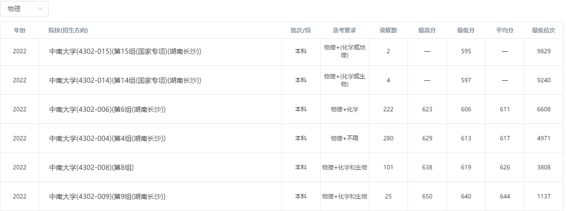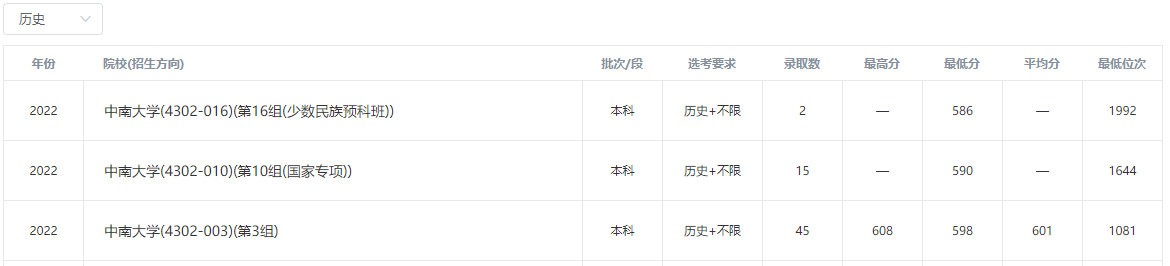 2022年中南大学在本省录取分数线: