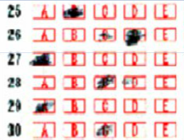 ⑤不规范填涂(只在选项上打勾、打点或画线):