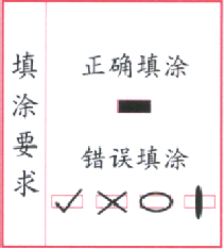 4. 填涂时,要求涂黑、涂满、涂实、涂匀。