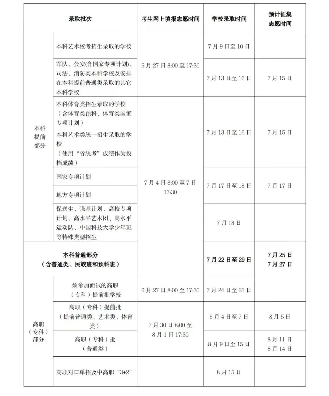 2023年海南省普通高校招生填报志愿和录取时间如下: