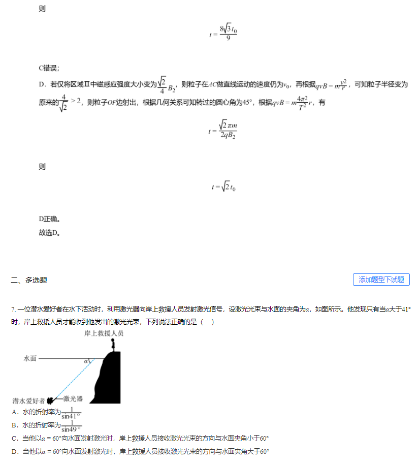 2023年高考湖南卷物理真题及答案