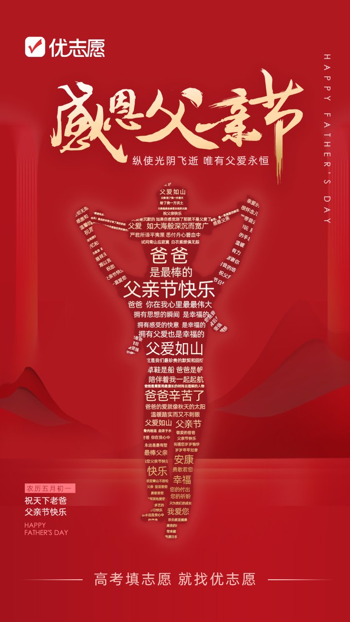 6月,不止有高考季,还有父亲节。当父亲节与高考季携手相约,注定这个六月将变得如此的神圣,在此优志愿祝天下所有的父亲:父亲节快乐!