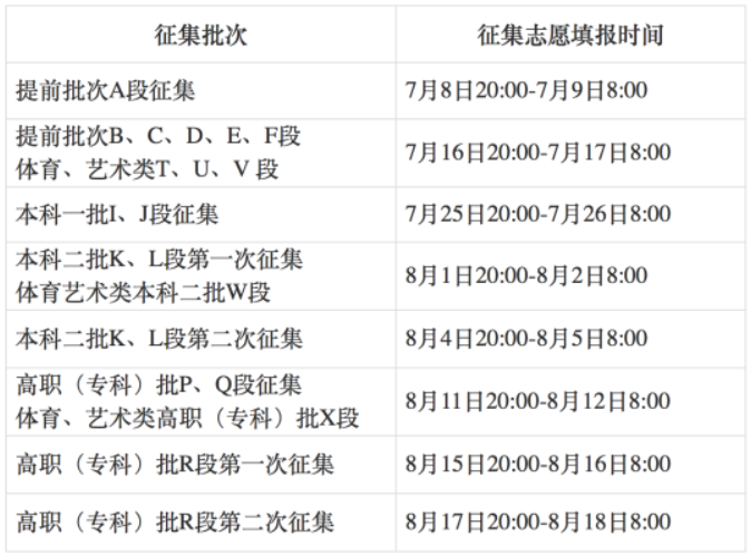 (四)征集志愿的时间安排