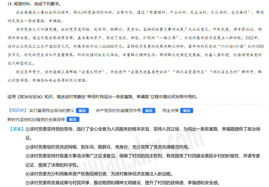 2023年高考湖北卷政治真题及答案
