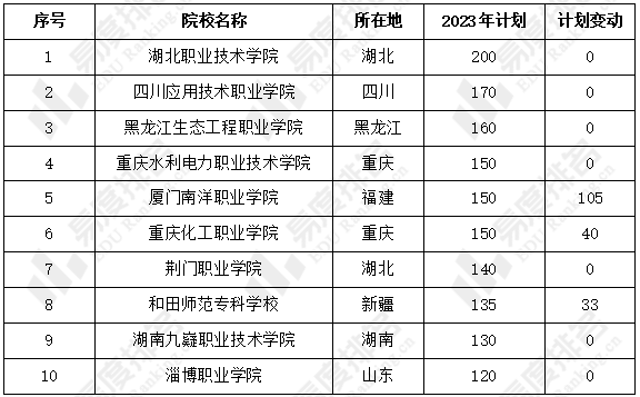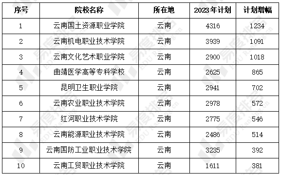 表 2 2023年云南高考扩招TOP10高校(专科普通类招生)