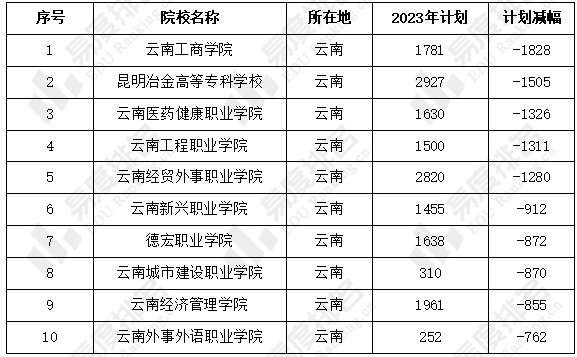 2023年云南省外院校的招生总计划约为2.3万人,较去年减少了超5000人,由此可以看出云南普通专科批次招生计划数下降的原因是:省外院校招生计划数明显减少。