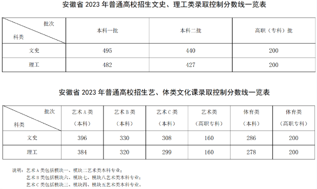 6月24日,经省招委会议审议批准,省教育招生考试院公布安徽省2023年普通高校招生各批次录取控制分数线。