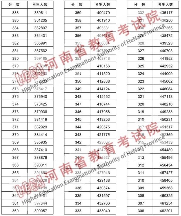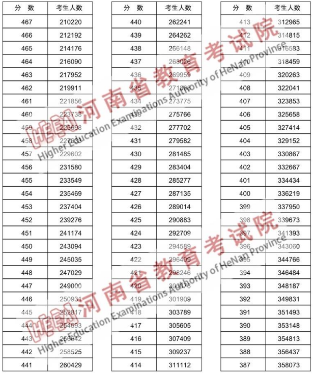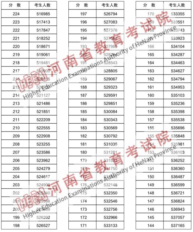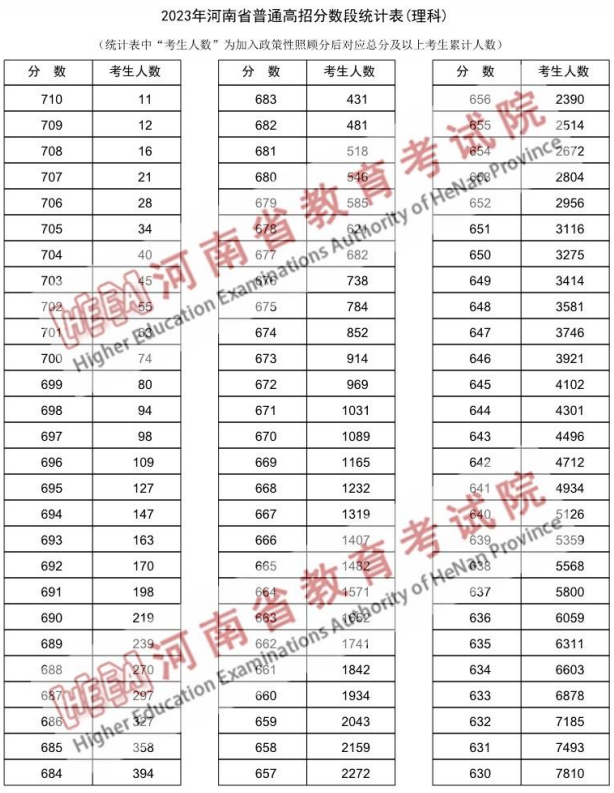 文章来源:河南省教育考试院 河南省2023年普通高校招生分数段统计表(理科)