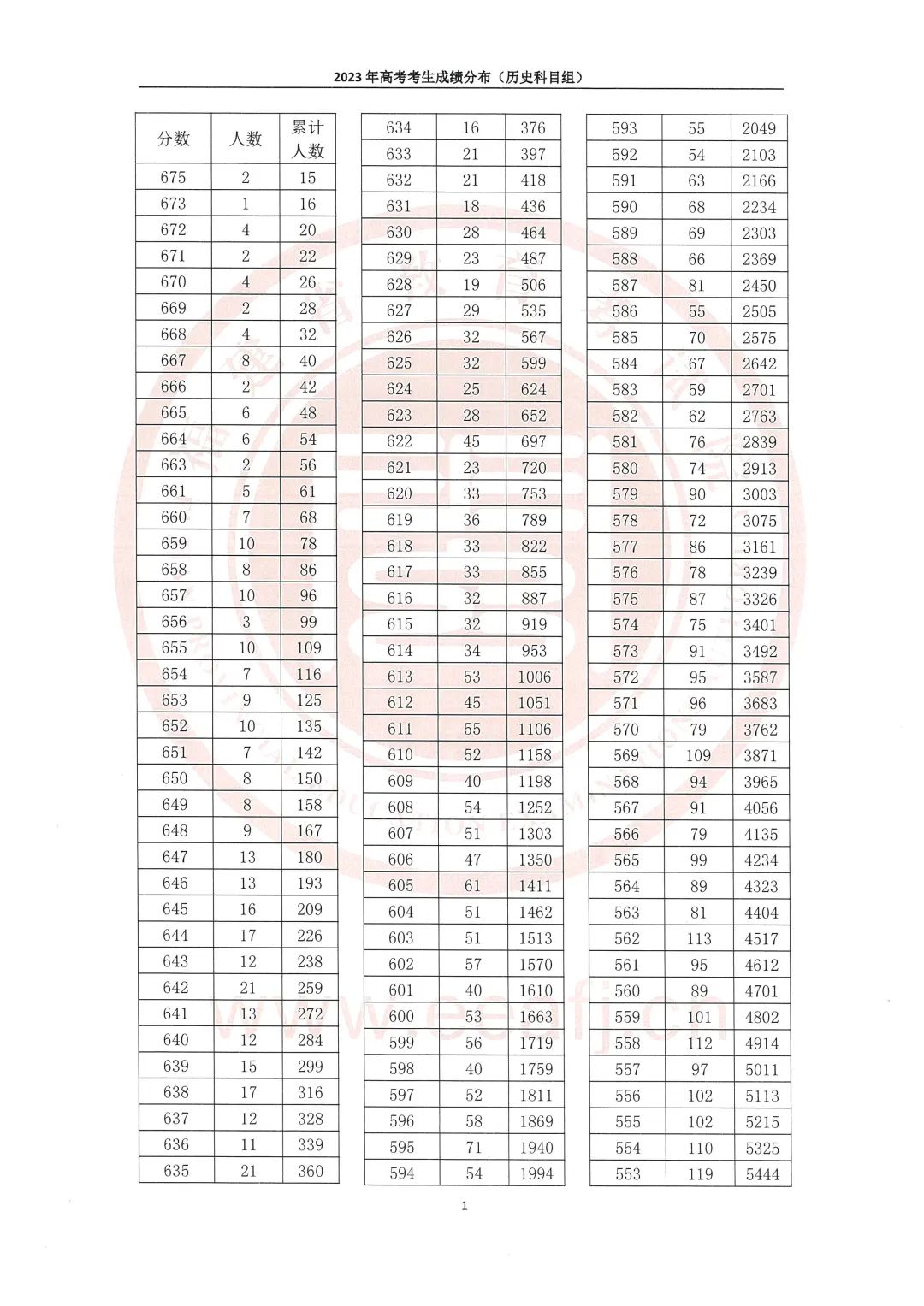 来源:(福建教育微言)一分一段丨2023年福建省高考考生成绩分布(含物理、历史科目组)