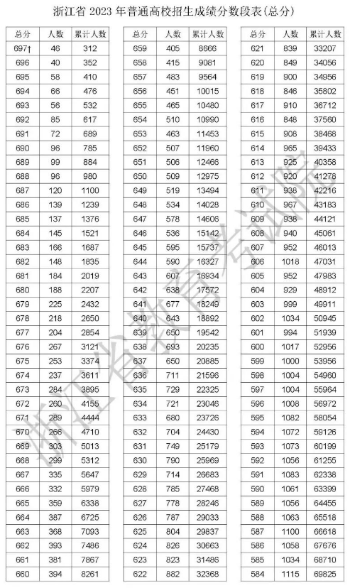 文章来源:浙江考试 2023年浙江高考成绩分数段表出炉,快来查看!