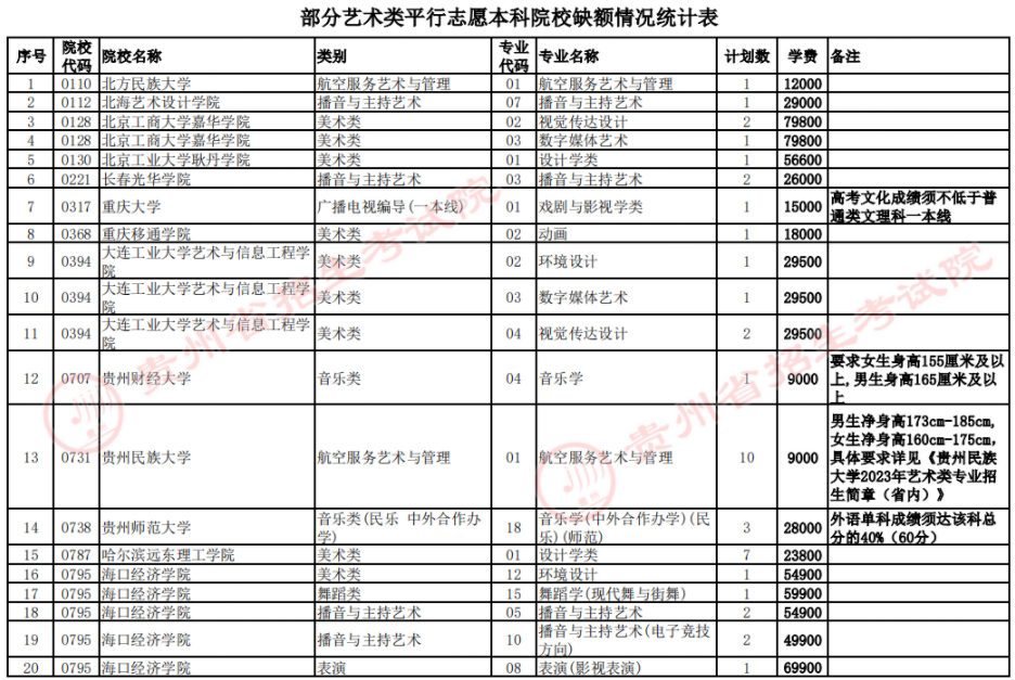 二、院校征集志愿计划数及专业见附表,考生填报时,请仔细查阅《贵州省2023年高考高校招生专业目录》和院校招生章程,了解院校招生专业的具体要求。