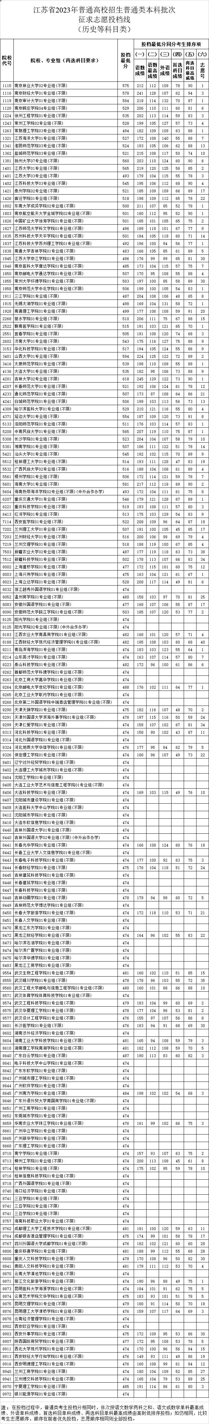 江苏省2023年普通类本科批次征求志愿投档线(历史等科目类)