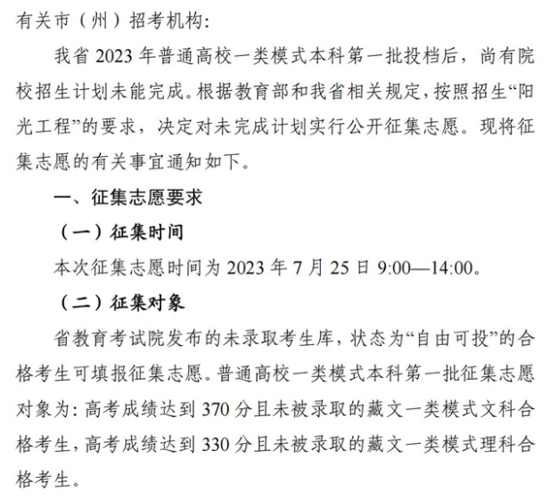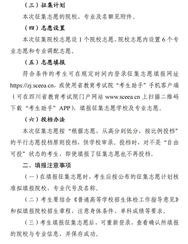 四川关于普通高校一类模式本科第一批未完成计划院校征集志愿的通知