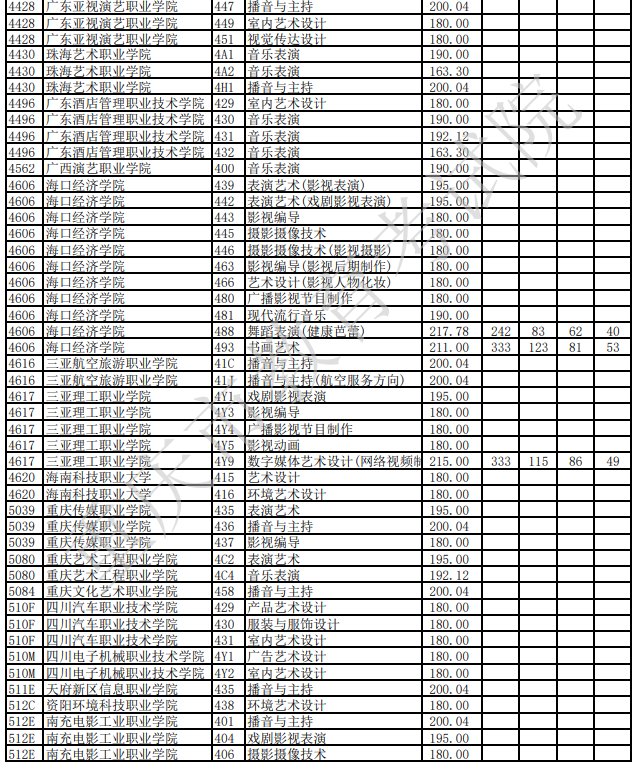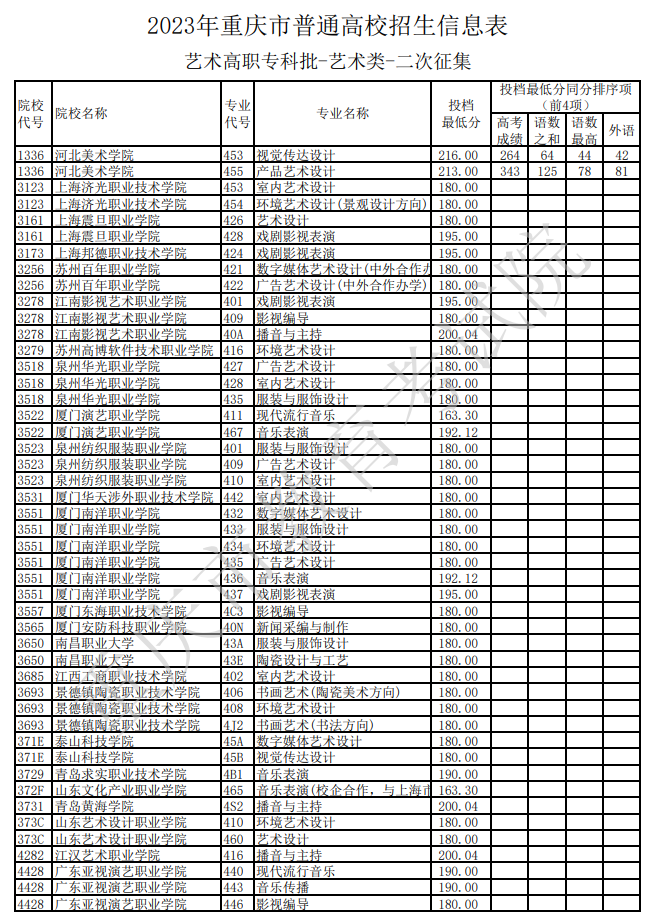 2023年重庆市普通高校招生信息表-艺术高职专科批-艺术类-二次征集