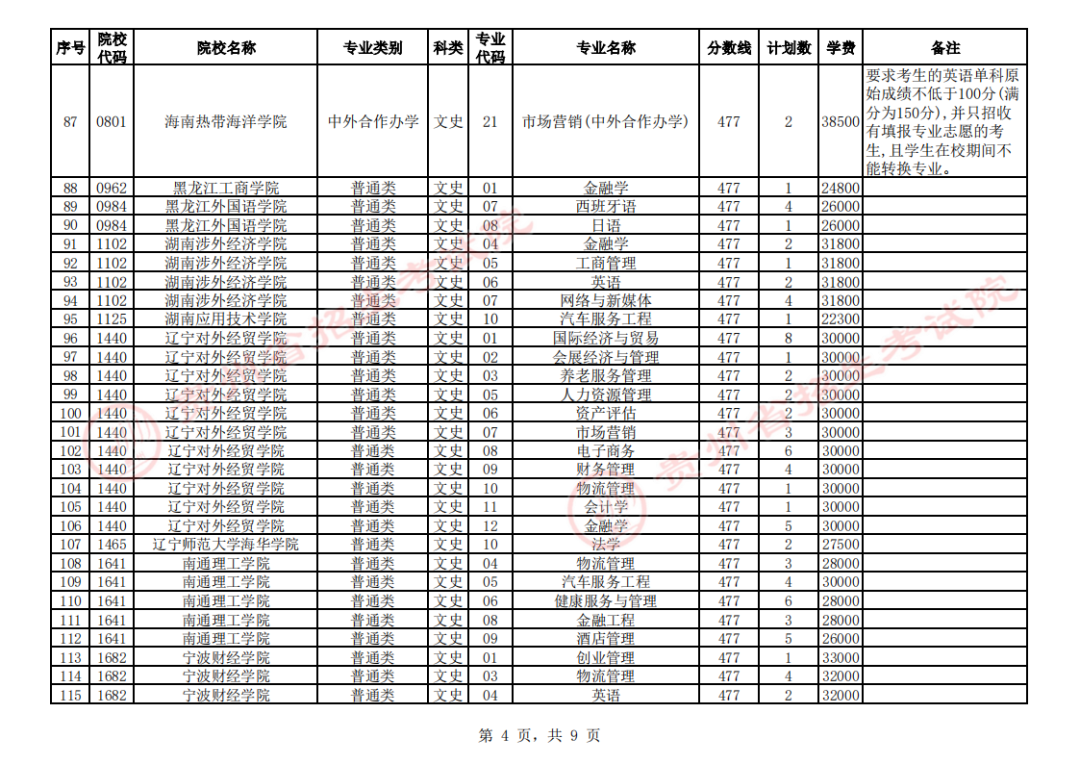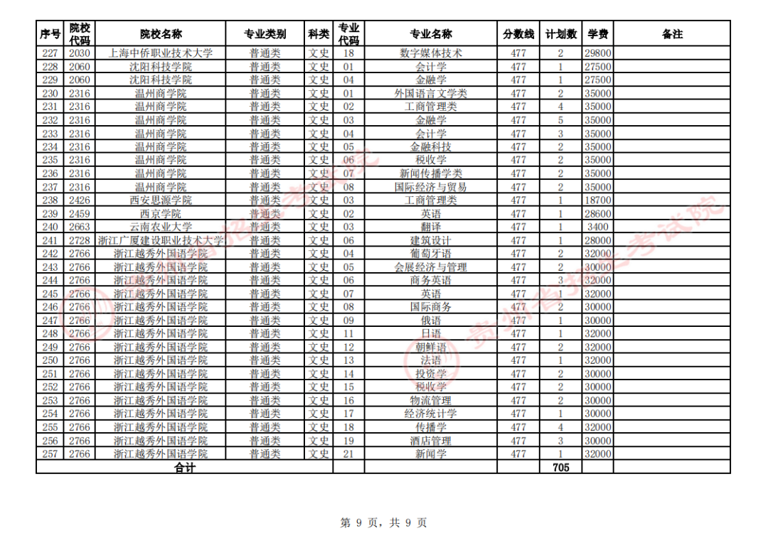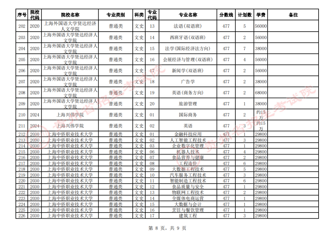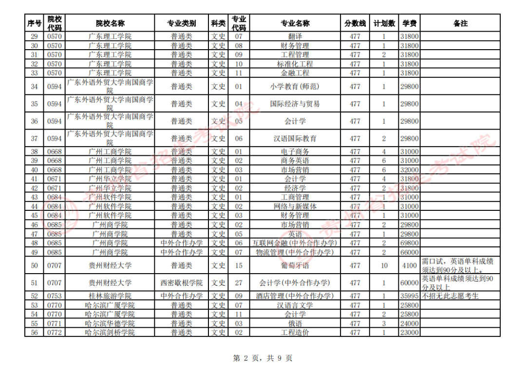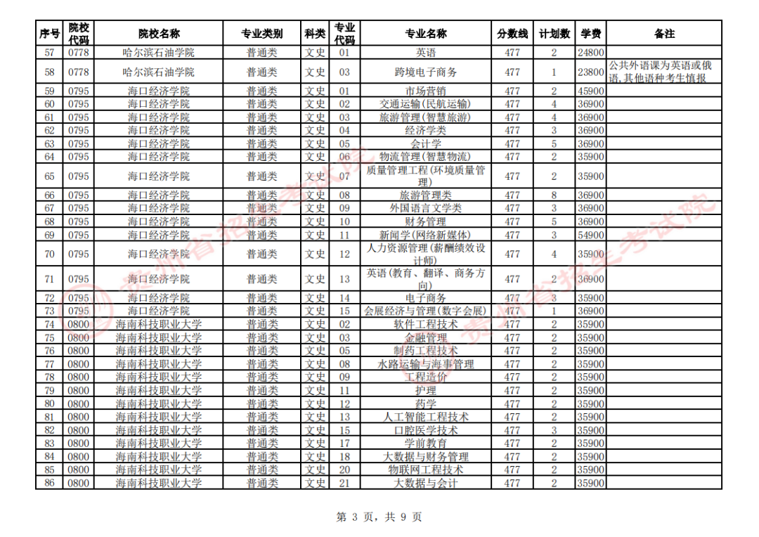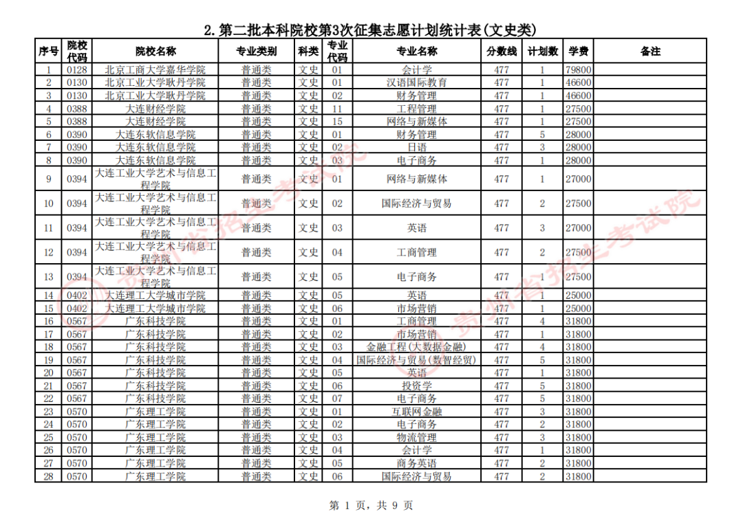 2. 第二批本科院校第3次征集志愿计划统计表(文史类)