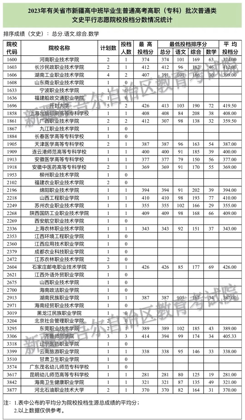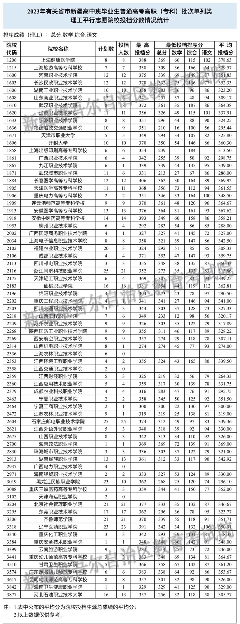 按照录取工作安排,2023年有关省市新疆高中班毕业生普通高考招生录取高职(专科)批次8月14日正式投档。录取现场工作组根据投档原则进行了投档,并通知相关院校及时接档、阅档,要求其按照录取原则及招生章程进行录取。目前,各录取环节工作有序进行,现将各院校投档情况公布如下。