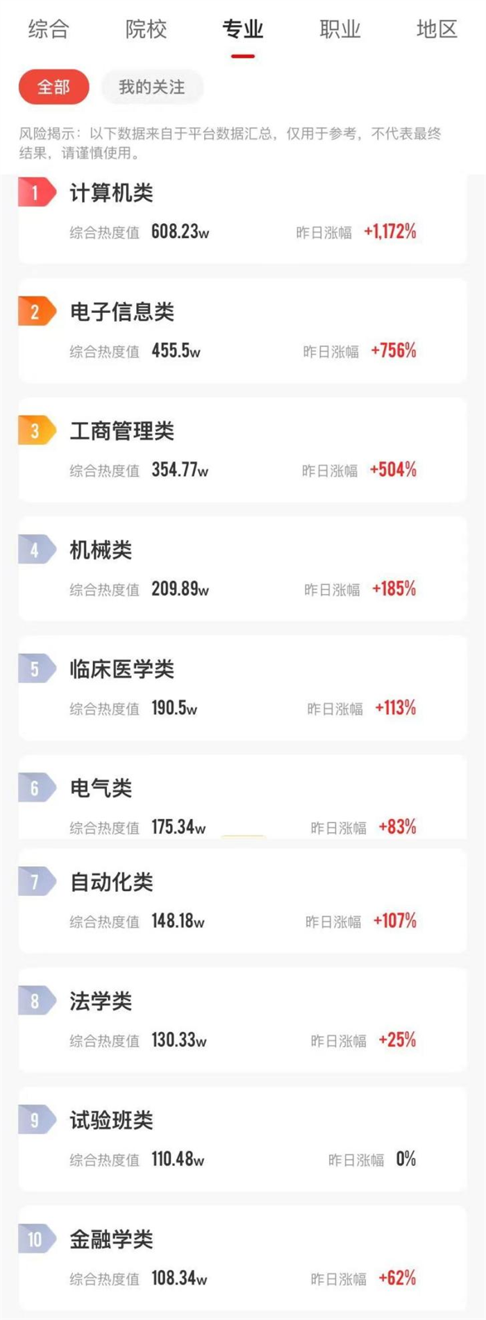 专业报考热度榜