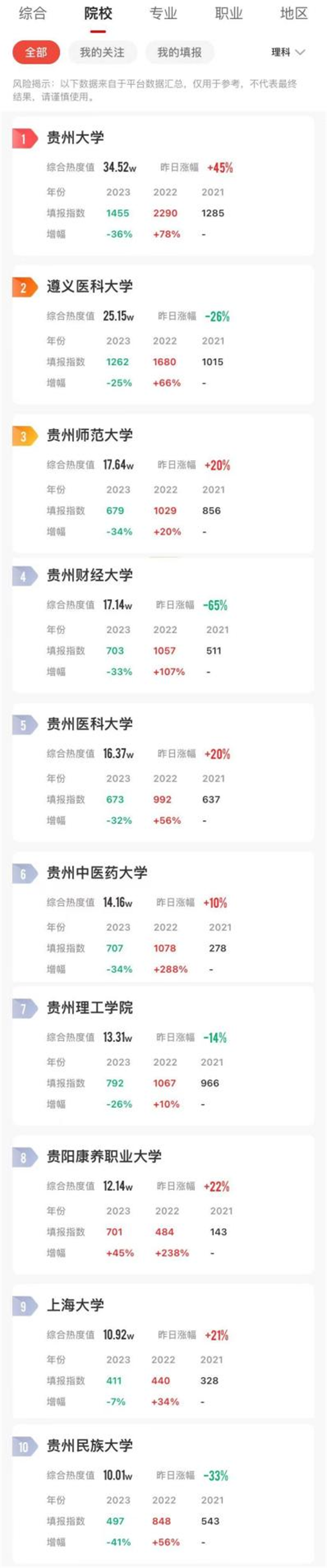 院校报考热度榜