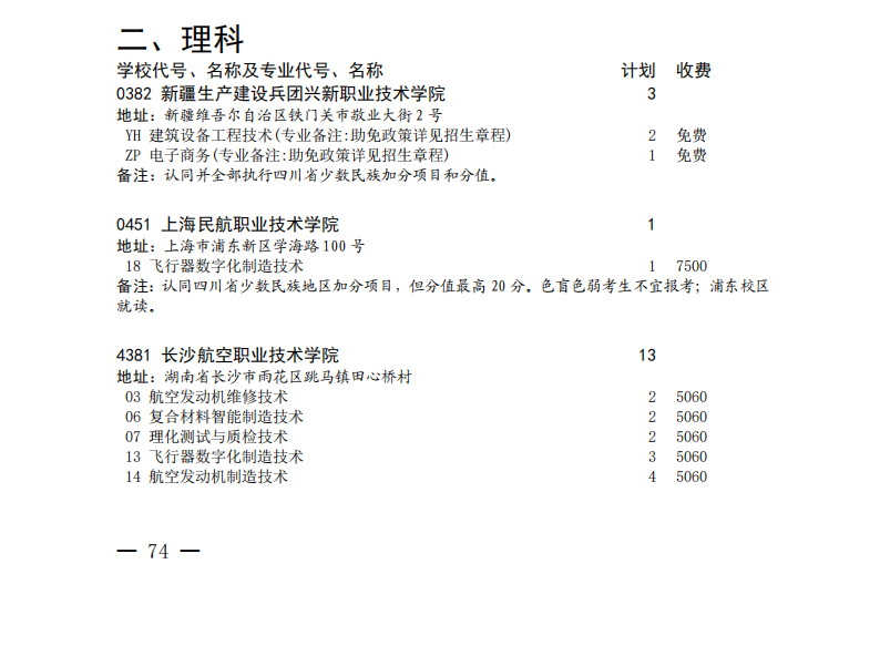 四川关于专科批征集志愿的通知(理科)